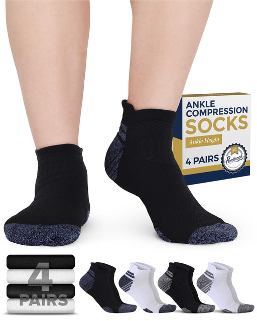 Pembrook Ankle Compression Socks for Women & Men - 4 Pairs | Sports Running Compression Socks | Athletic Ankle Support Socks