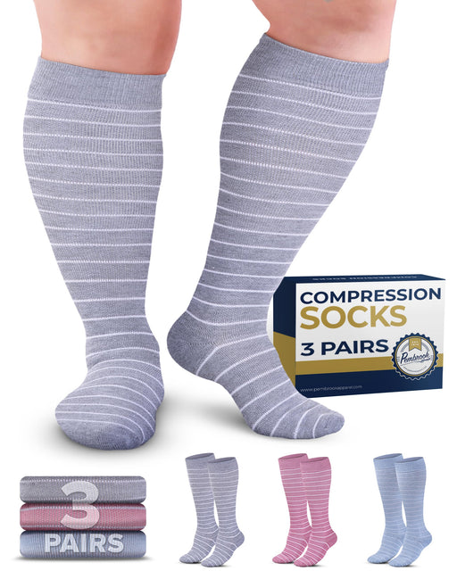 Pembrook Plus Size Compression Socks Wide Calf - 3 Pairs, 20-30mmHg Extra Wide Calf Compression Socks Women & Men, Up to 4XL