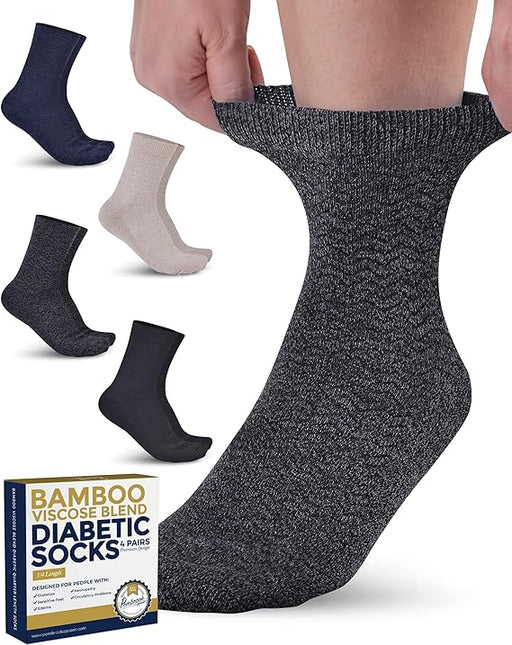 Pembrook Diabetic Socks for Women & Men - 4 Pairs Ankle Bamboo Viscose Socks Woman | Womens Diabetic Socks Size 9-11