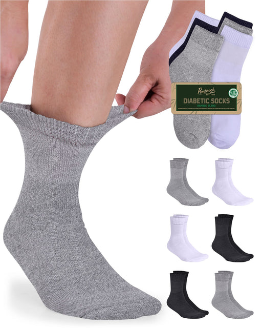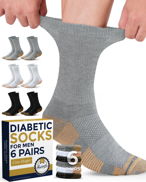 Pembrook Diabetic Socks for Men - 6 Pairs Crew Diabetic Neuropathy Socks for Men, Mens Diabetic Socks, Non Binding Socks