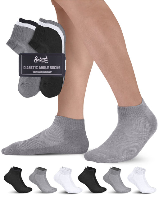 Pembrook Diabetic Ankle Socks for Men and Women - 6 Pairs Low Cut Seamless Diabetic Socks Women | Diabetic Socks for Men