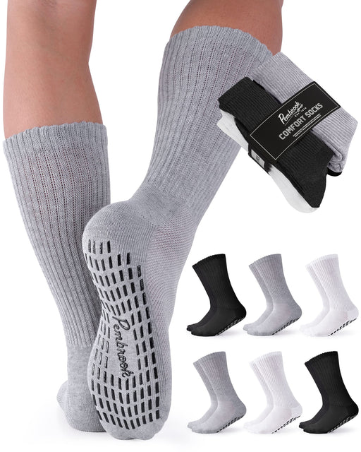 Pembrook 6 Pairs Diabetic Socks with Grippers for Men & Women - 12 Colors Neuropathy Socks for Women | Edema Socks
